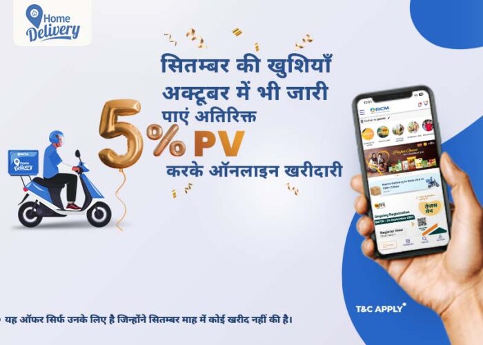 आरसीएम होम डिलीवरी अक्टूबर ऑफर: ऑनलाइन ऑर्डर करने पर पायें अतिरिक्त 5% पीवी